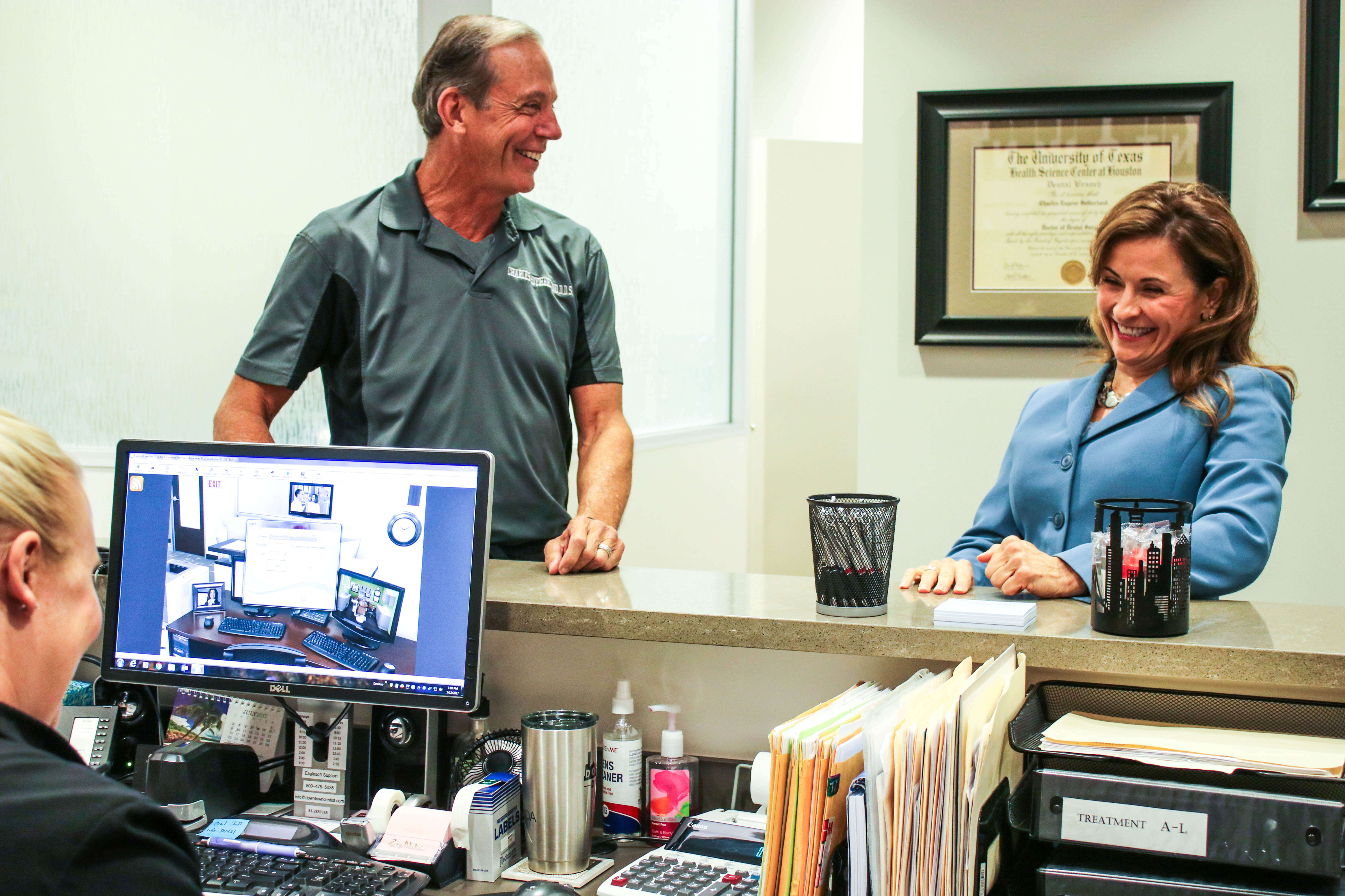 The skilled doctors at the Downtown Dentists proudly serve the cosmetic and restorative dental needs of Houston, Texas. If you are seeking dental care, the Downtown Dentists and our skilled, friendly team members would be happy to serve you! We are dedicated to providing our patients with personalized service and a comfortable environment, because we realize that such qualities can be hard to find in today’s busy world. We consider your dental health our top priority, and strive to make sure you feel comfortable and satisfied with our service.